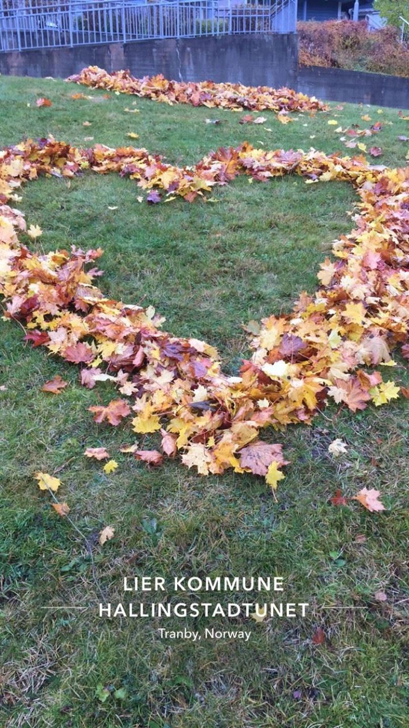 I dag har Maurtua gått tur opp til Bratromveien og gjort hjertestreker. De laget hjerter av de flotte høstbladene på plenen foran slik at beboerne kunne se de fra vinduet. Det er mye glede i å glede andre:-)