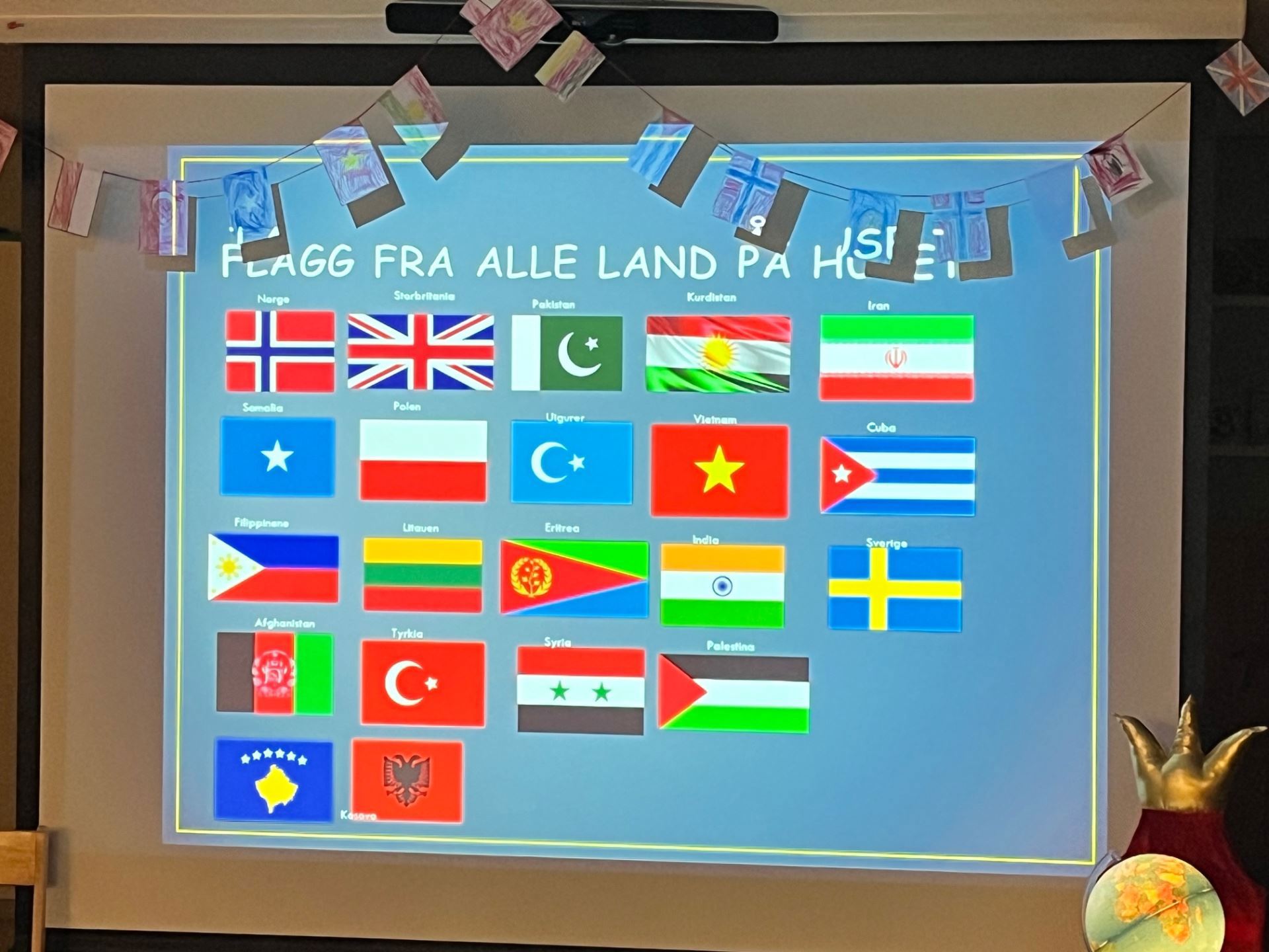I dag har vi markert FN-dagen. Vi har hatt fellessamling på Furustua der vi snakket om hva FN står for og vi fikk se flaggene til alle landene som er representert i barnehagen. Vi sa også «hei» og sang Fader Jacob på alle de ulike språkene. Barna har laget kunst på avdelingene som vi selger til inntekt for barnehagens vennskapsby i Vietnam. I tillegg markerte vi Divali som er en lysfest hos hinduismen, som markerer overgangen til et nytt år.