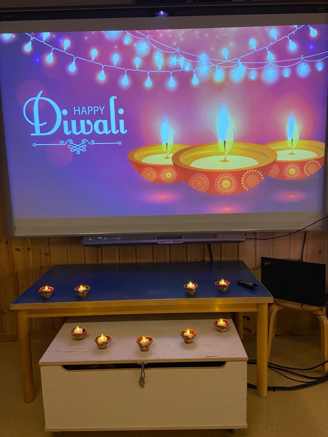 I november markerte vi Diwali for storbarnsavdelingene i barnehagen. Diwali er hinduers lysfest som feires ved overgangen til et nytt år. Dette er årets viktigste høytid innen hinduismen. I år var Diwali 12.november. Happy Diwali. I barnehagen har vi mange barn og ansatte fra ulike kulturer og vi setter stor pris på det mangfoldet vi har hos oss.